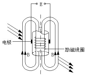 插入式電磁流量計傳感器實際上是一種液體流速測量儀表。它是應(yīng)用法拉第電磁感應(yīng)定律的原理制成的流速測量儀表。下圖是插入示電磁流量計基本工作原理的示意圖。用一個長桿將一個小的電磁流量傳感器插入到被測量管道中規(guī)定的位置,導(dǎo)電流體垂直流過傳感器的工作磁場時(轉(zhuǎn)換器向傳感器提供勵磁電流時,在勵磁線圈構(gòu)成的勵磁系統(tǒng)中便產(chǎn)生工作磁場),相當于導(dǎo)體在磁場中作切割磁力線運動。根據(jù)法拉第電磁感應(yīng)定律可知,在導(dǎo)體的兩端產(chǎn)生感應(yīng)電動勢。此感應(yīng)電動勢由接觸流體的一對電極來檢測。電動勢的大小與磁感應(yīng)強度B、兩極間距離L和流體的平均流速呈正比。即