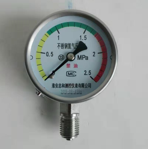 壓力表在出廠前都是經過生產廠家檢測合格后出廠的,由于壓力表作為現場壓力值測量顯示的壓力儀表作為壓力檢測的一部分,一般在安裝前應當進行檢定合格后再投入使用,并用標簽注明下次檢定日期貼在壓力表表殼上面,并且壓力表檢定后加裝鉛封以保證沒有遭到人為干預正常使用。通常為了保證壓力表讀數顯示清晰指示,在刻度盤上劃出指示工作壓力的黃綠紅線或者刻度標示。