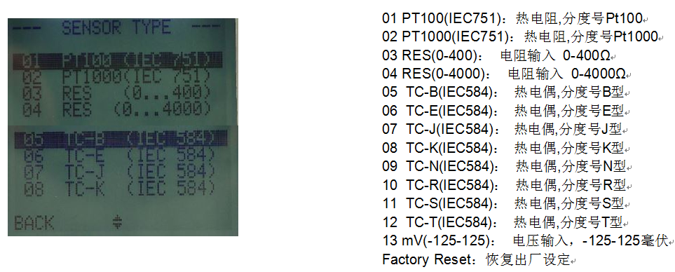 按鈕進入 SENSOR-TYPE(傳感器類型)子菜單,按