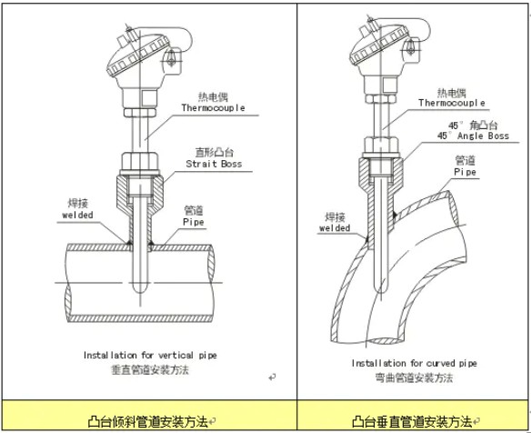 1、熱電阻、熱電偶安裝45°角凸臺(tái)